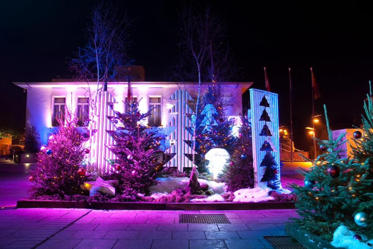 Mise en valeur de rues, façades et espaces publics pour les périodes festives.